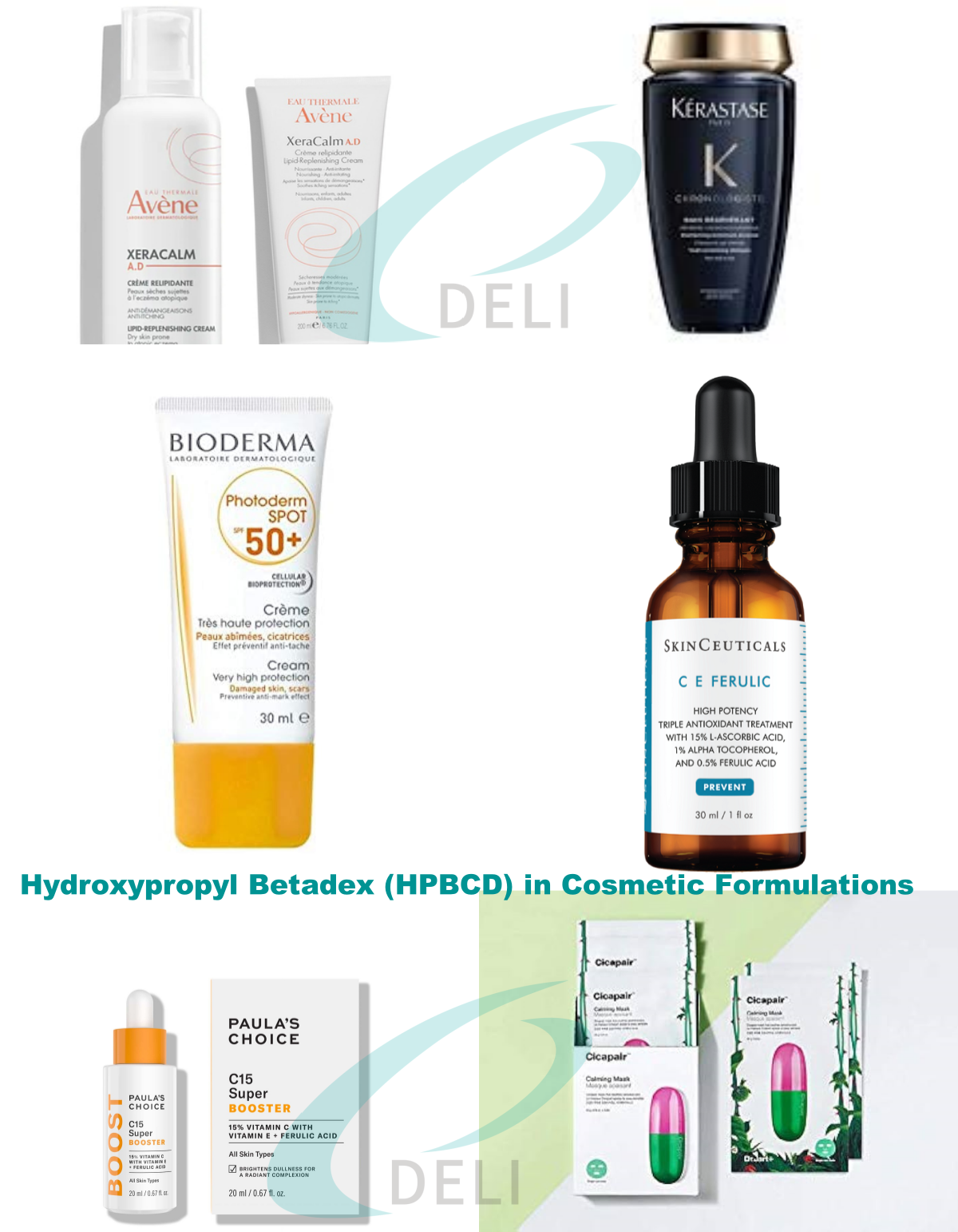 فی الحال ، بہت سے کاسمیٹک اور جلد کی دیکھ بھال کرنے والے برانڈز مخصوص اجزاء (جیسے ، ہائڈروکسیپروپائل بیٹسائکلوڈیکسٹرین ، HPBCD) کو ان کی تشکیل میں استعمال کرتے ہیں ، جس سے HPBCD استعمال کرنے والی تمام مخصوص مصنوعات کی یقینی طور پر فہرست بنانا زیادہ مشکل ہوجاتا ہے۔ تاہم ، عوامی طور پر دستیاب لٹریچر ، پیٹنٹ اور صنعت کے ذرائع کی بنیاد پر ، مندرجہ ذیل کچھ واضح یا انتہائی ممکنہ زمرے اور کاسمیٹکس اور جلد کی دیکھ بھال کرنے والی مصنوعات کی مثالیں ہیں جو HPBCD استعمال کرتی ہیں: