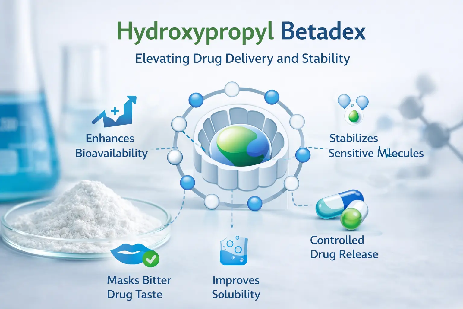 ہائیڈروکسی پروپیل بیٹاڈیکسایک انقلابی دواؤں کا جزو ہے جو ایسی دوائیوں کو تبدیل کرتا ہے جو اچھی طرح سے تحلیل نہیں ہوتیں جو بہت اچھی طرح سے کام کرتی ہیں۔ اس تبدیل شدہ cyclodextrin کے مشتق کے بارے میں بہت ساری عمدہ چیزیں ہیں، جیسے کہ منشیات کی بہتر حل پذیری، بہتر حیاتیاتی دستیابی، اور بہتر استحکام۔ مالیکیولر کیپسول ٹکنالوجی مستحکم شمولیت کمپلیکس بناتی ہے جو دیگر فارمولیشنز کے ساتھ آنے والے مسائل کو حل کرتی ہے۔ پوری دنیا میں فارماسیوٹیکل انڈسٹری کے سائنس دان اس لچکدار پولیمر کیریئر کا استعمال منشیات کی ترسیل کے طریقوں کو بہتر بنانے، زہریلے پن کو کم کرنے اور زبانی اور انجیکشن کے قابل استعمال دونوں کے لیے مستقل علاج کے نتائج حاصل کرنے کے لیے کرتے ہیں۔